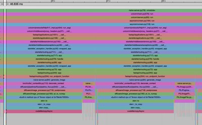 This kind of issue can be hard to spot. Because when they are done early in the loop and the sync is fast and hard to notice in the trace. However, in the FastAPI implementation with semaphore, it will show up in the trace when the second request is scheduled before the first one is done. The blocking operation will have to wait for the first request to finish.